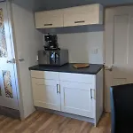 Banyo küveti, duş gibi kolaylıkların bulunduğu bir banyo odası mevcuttur.